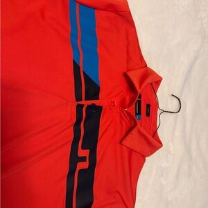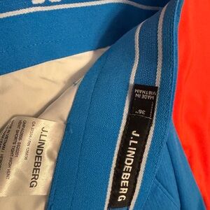 Men’s J.Lindeberg Golf Red and Blue Polo Shirt (Large) w/ Blue Shorts Set (36”)