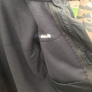 Very versatile jacket. Waterproof fabric with lining that can zip out. Pockets in the front with zippers and deep pockets in the lining. The hood is waterproof but not lined. Very striking black snd gray. Very warm for outdoor activities or Zip out the lining for just raincoat.