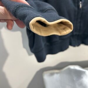 Stay stylish and comfortable with this black and tan men's jacket. 100% cotton. Perfect for any occasion. PTP. 26. Non smoking.