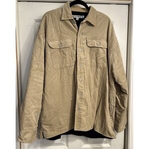 Mens Jacket Coat Tan Corduroy Fleece Lined 2XL Trucker Chore Button Up Pockets