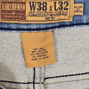 XI0S Mens Jeans Sz 40x30 Whiskering Straight Stretch Comfort Distressed Denim Y2k