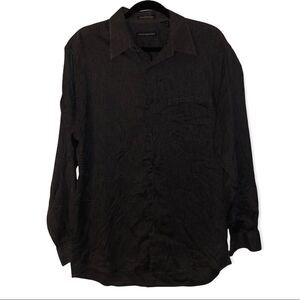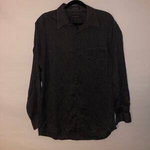 Long Sleeve Collared Shirt Dark Navy Blue & Tan Size Large