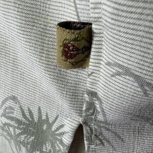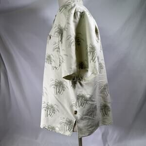 The product is a men's Joe Marlin Hawaiian button-up shirt in size XL. It features a cream color with a short sleeve design, perfect for a casual and laid-back look. This dress shirt is ideal for those who enjoy a relaxed and tropical style, making it a great choice for summer outings or beach vacations.