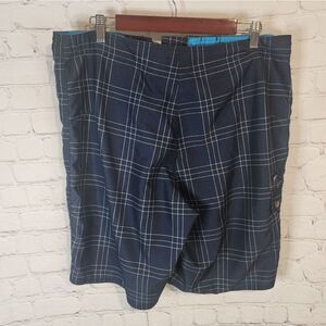Stylish navy plaid shorts featuring a striking blue dragon design. Perfect for casual wear.