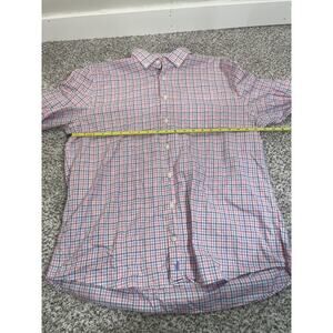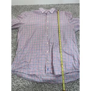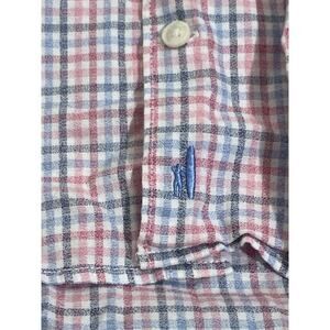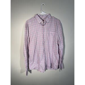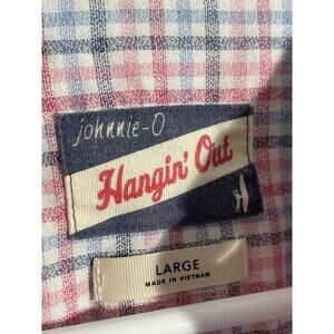 Mens Johnnie-O Hangin' Out Large Long Sleeve Plaid Shirt Button Down Pink Blue. Excellent used condition. No rips tears holes or stains. See photos for condition and measurements.