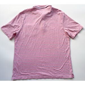 Light pink polo with thin blue stripes. Perfect for every day wear or on the golf course.