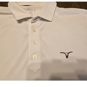 Men's Johnnie-O White Polo Shirt SS Polyester Size XL Longhorn
