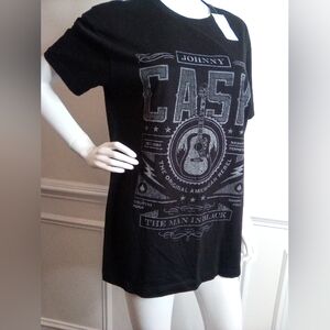 Celebrate the legend with this Johnny Cash black graphic t-shirt. Perfect for fans of classic American music.