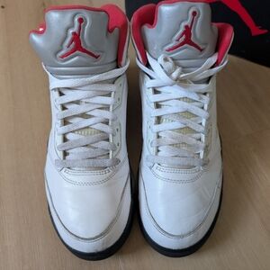 Men's Jordan Air 5 Retro - White & Fire Red - Size 10.5 - Leather Upper