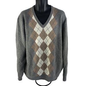 Mens Jos. A. Bank Argyle V-Neck Wool Blend Sweater Sz XL Gray Brown Preppy
