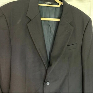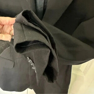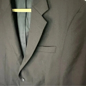 great basic black Suit coat to have on hand for all occasions. Chest pocket, 2 buttons, fully lined, great used condition. No material or size tag attached
