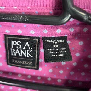 Mens Jos. A. Bank Traveler Pink & Blue Polo Shirt 100% Cotton Short Sleeve XXL