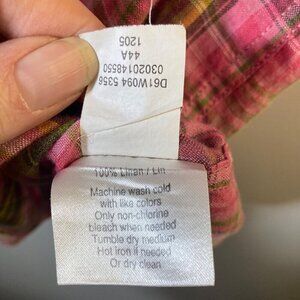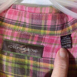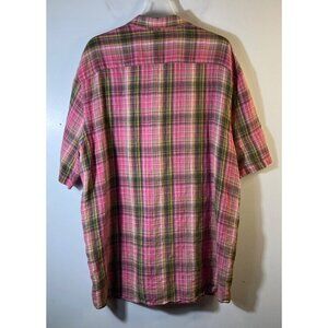 Mens Joseph Abboud Linen Short Sleeve Plaid Button Shirt Pink Green 2XL