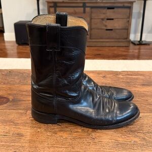Mens Justin Black Leather Roper 3133 Western Boots Size 10.5