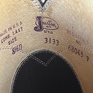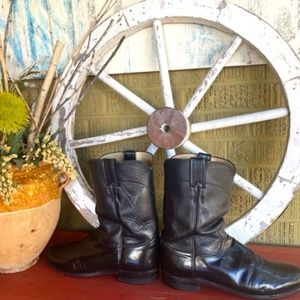 Men's Justin Black Leather Roper Boots, Style 3133 - Size 8 1/2 D