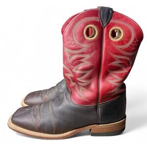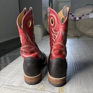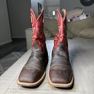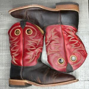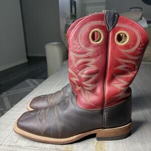Mens Justin Cowboy Boots Bent Rail Leather Square Toe Dark Red Brown Size 12EE