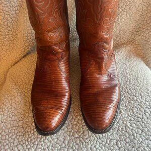 Men's Justin Western Cognac Lizard Cowboy Boots, Size 10