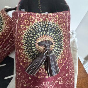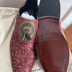 Men's Kanvas Maroon Printed Tassel Loafers Size 44 (US Sz 10-10.5)