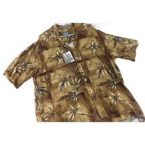 Men's Kaylua Bay Hawaiian Khaki Tropical Palm Leaf Shirt LG. NWT.