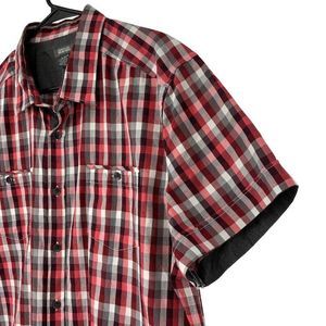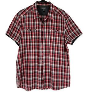 Mens Kenneth Cole Button Shirt Short Sleeve XL Plaid Relaxed 3731 EUC