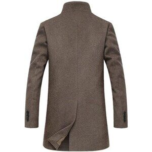 Men's Khaki Black Trench Coat Long Wool Blend Overcoat Slim Fit Down Topcoat