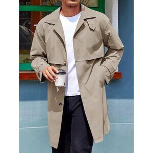 Mens Khaki Breasted Slim Fit Long Jackets Casual Fall Windbreak Trench Coat