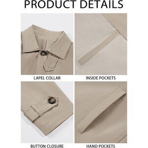 Fabric:Mens single breasted trench coat is made of high-quality fabric, lightweight, comfortable and durable. It also has some wind and rain resistant qualities, providing a pleasant wearing experience.