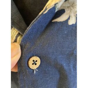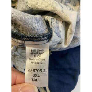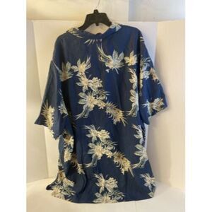 Mens King Size 3XL Tall Big Linen/Rayon Blue Hawaiian Style Shirt Wood Buttons. measures 30" chest, 36" long.