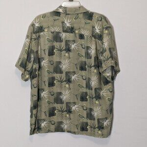 Men's "KnightsBridge" Green Tropical Short Sleeved Casual Button Shirt; Size L
