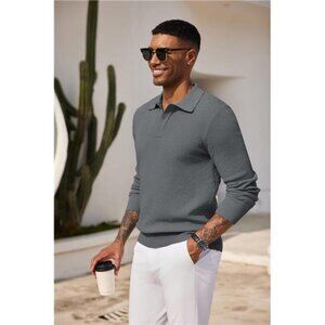 - Classic Design : Men's knit polo shirts sweater features with polo collar, 3 button closure, unique waffle weave pattern, classic solid color, high elastic banded cuffs and hem, this soft lightweight polo sweater is more fashionable than the basic polo sweater, which is suitable for fall, winter and spring.