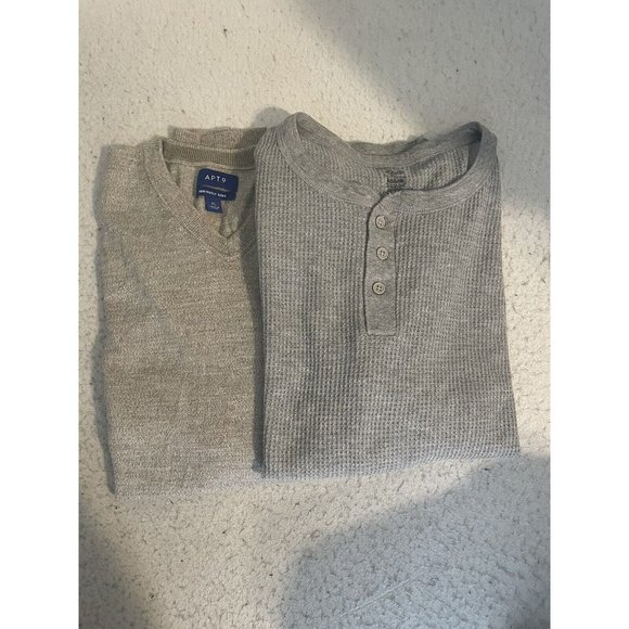 Mens Knit Sweater Lot of 2 XL V-neck and Henley Long Sleeve Soft Pullover
