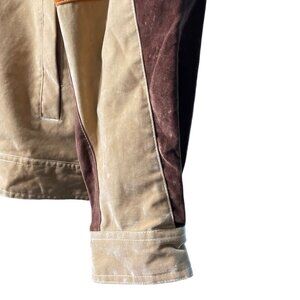 Stay warm and stylish in this Koman Suede Jacket. This men's coat features a button down design, color-blocked style in brown, and is size large. New and ready to upgrade your wardrobe.