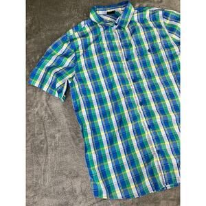Men’s Koppen Large Blue Green Yellow Plaid Short-Sleeve Shirt – Excellent