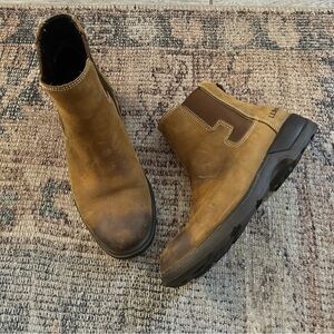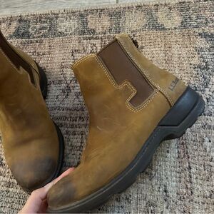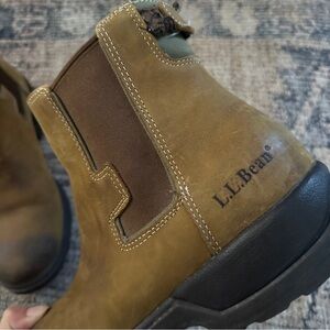 Mens LL bean brown weatherproof Chelsea boots good pre owned condition signs of wear on the back where you pull it on