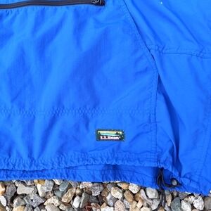 Toggle Tie at waist. The blue color and L.L. Bean logo accents add a touch of style, while the jacket's XL size and regular fit make it comfortable for walking and hiking.