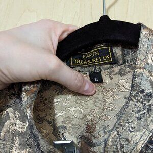 My ex boyfriend used to wear these to the club in the late 00's. It's thai silk, I don't have much to say. I hand washed this after it came out of storage and let it dry. It's soft to the touch and gold-brown thread/brocade.