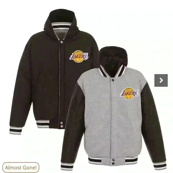 🆕 Men’s LA Lakers Embroidered Logo Reversible Hooded Fleece Full-Snap Jacket