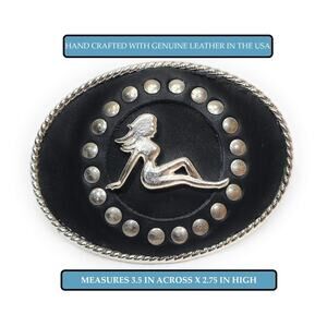 Mens LEATHER BELT BUCKLE with MUD FLAP LADY Biker Trucker 1.5" Made in USA