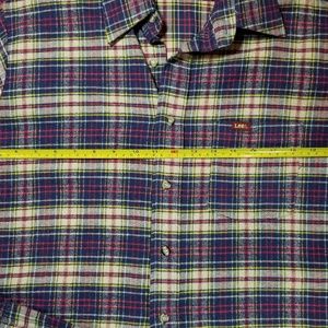 Great looking pre-owned LEE flannel shirt. The shirt tapers in a bit in the middle. 100% cotton. Made in Hong Kong. Fits slim and falls just right. Looks great with jeans!