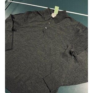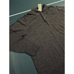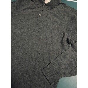 Men’s LL Bean Button Collared 100% Wool Pullover Sweater LARGE - FHQ7 Dark Gray