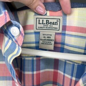 Classic and comfortable, this L.L. Bean short sleeve shirt is perfect for warm-weather wear. Featuring a timeless red, blue, and cream plaid pattern, this lightweight cotton shirt offers a laid-back yet put-together look. Designed with a button-down collar, front chest pocket, and full button closure, it’s versatile enough for casual outings, barbecues, or everyday wear.