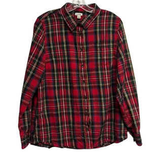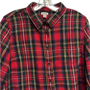 Men's LL Bean Red Tartan Plaid Flannel Button Up Flannel Shirt Size Large (L)