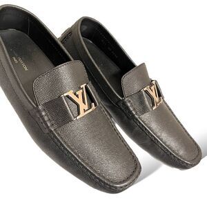 Mens LOUIS VUITTON Leather Drivers with Silver Tone Metal LV Motif |Size: 11M|