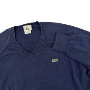Mens Lacoste Lightweight Cotton V-Neck Sweater Size 5 (Large) Navy