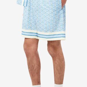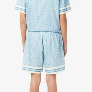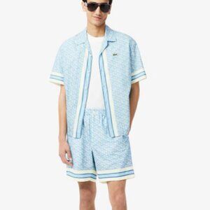 Mens Lacoste Men's Monogrammed Button-Up Shirt and Shorts in Blue/White Size XL