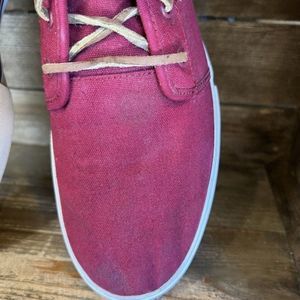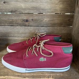 Mens Lacoste Red Mid Top Canvas Casual Shoes Sneakers Size 12 M GUC