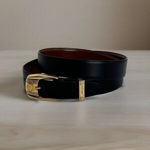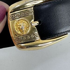 Men's Lamasini Black Golden Lion Head Belt Bonded Leather Line 38 Designer