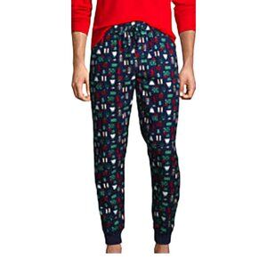 Mens Lands' End Flannel Jogger Pajama Lounge Pants Blue Presents XL NWT JJ1779