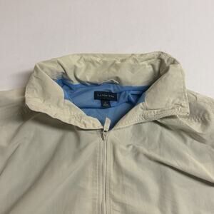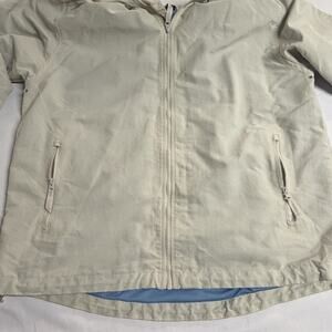 Men's Lands End Hooded Cream Colored Full Zip Windbreaker Size Large Zip Pockets