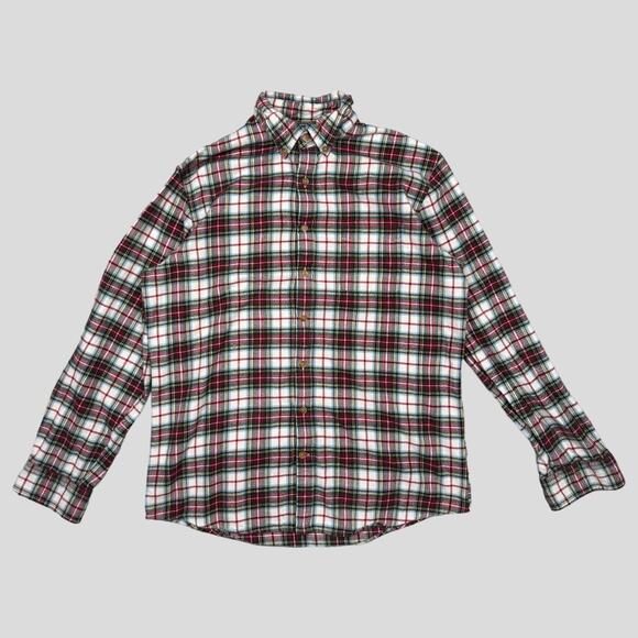 Men's Lands'end Red & Green Plaid Flannel Button Down Shirt Size Large